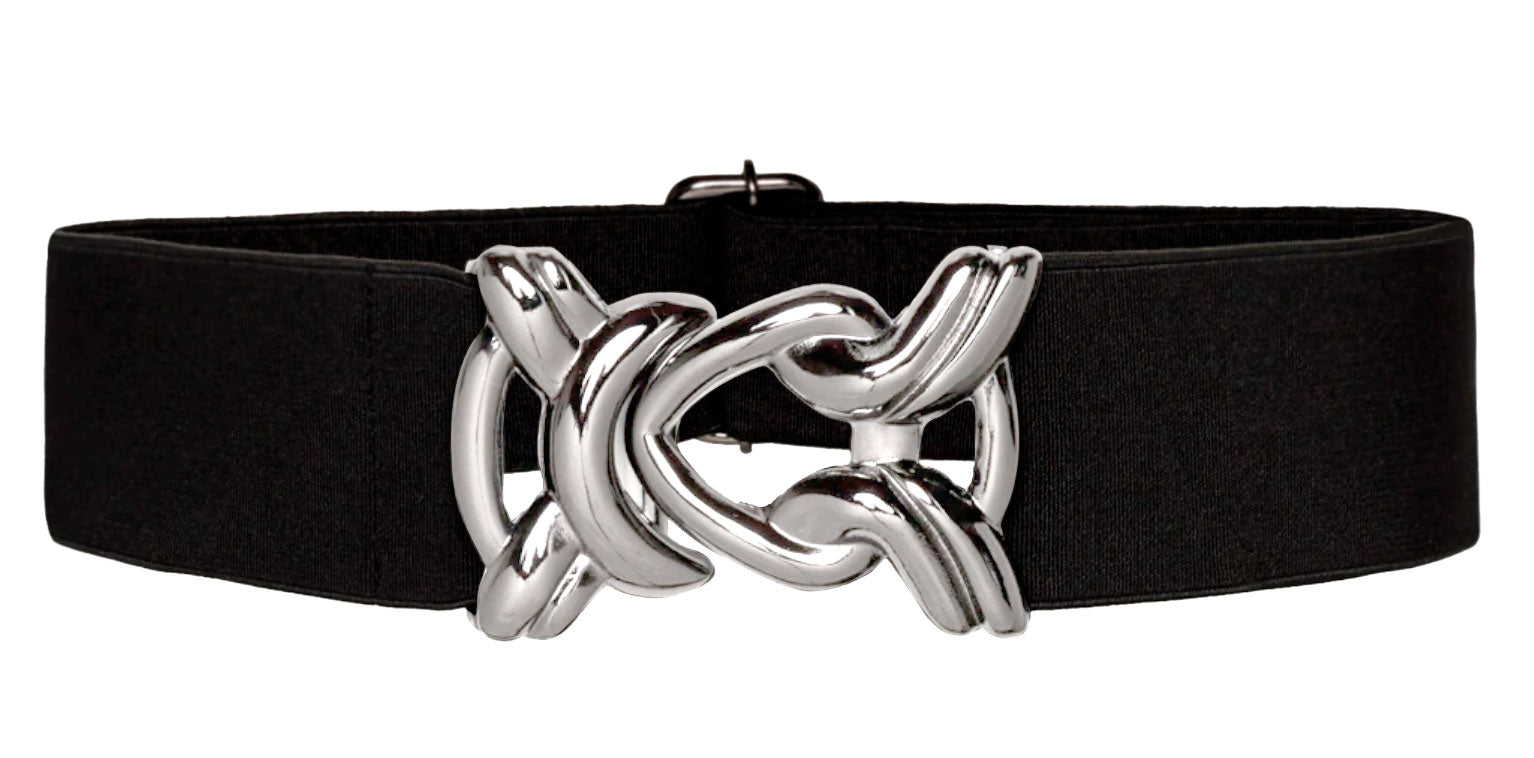 Stretch Belt with Silver Metal Knot Buckle - Black